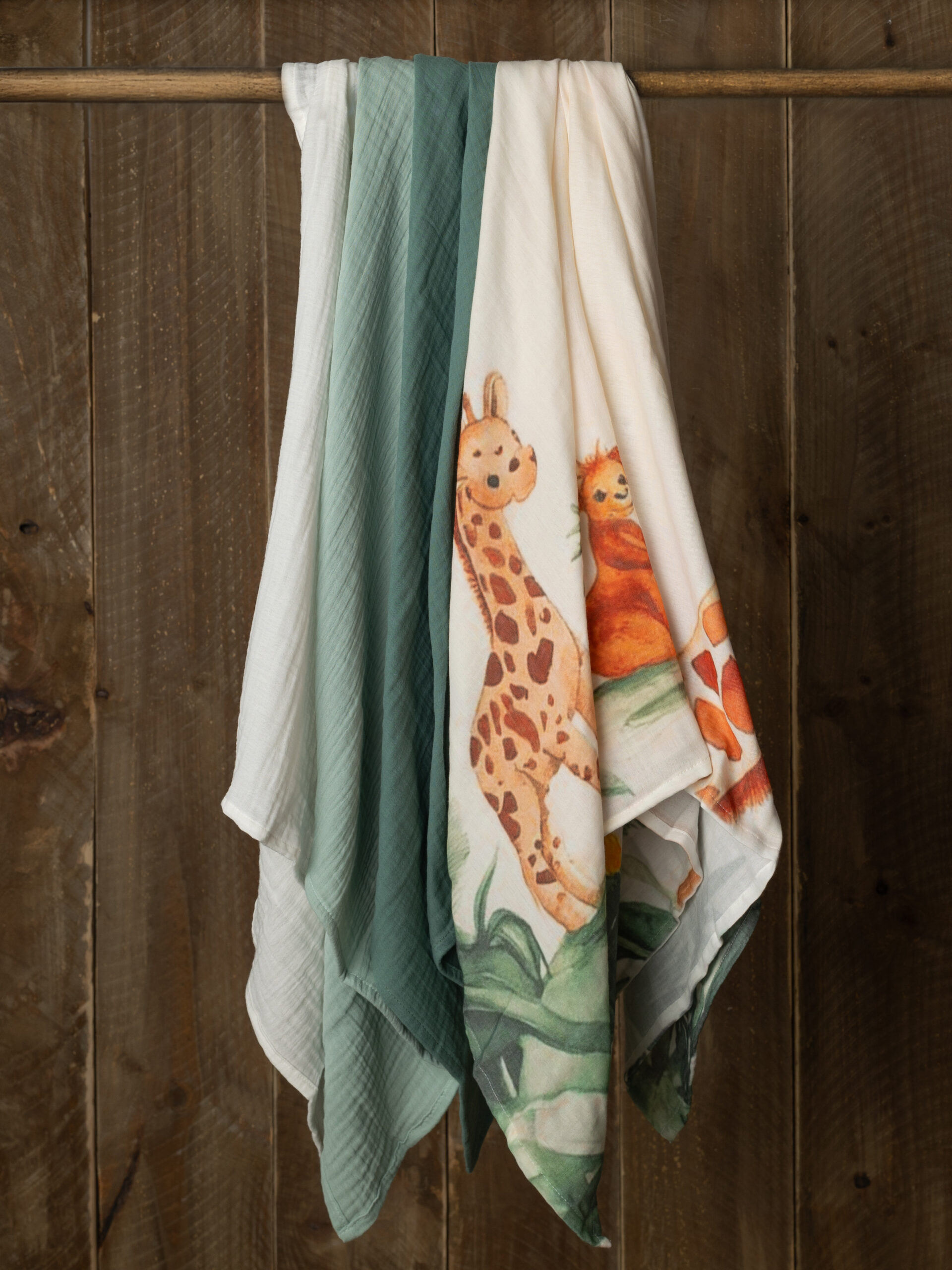 3 muselinas (65×65 cm) ideales para su uso diario.